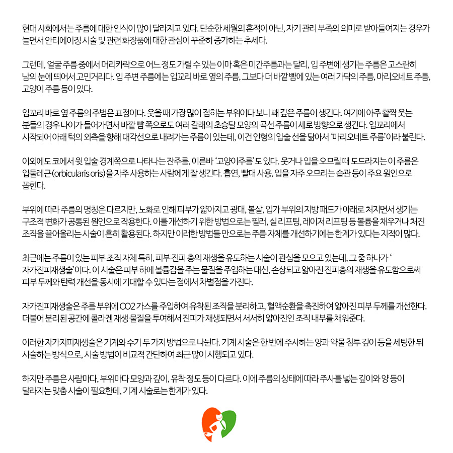 | 팔자∙입가∙마리오네트 주름, 자가진피재생술로 개선 [언론보도] (1) | 2025.03.24 |