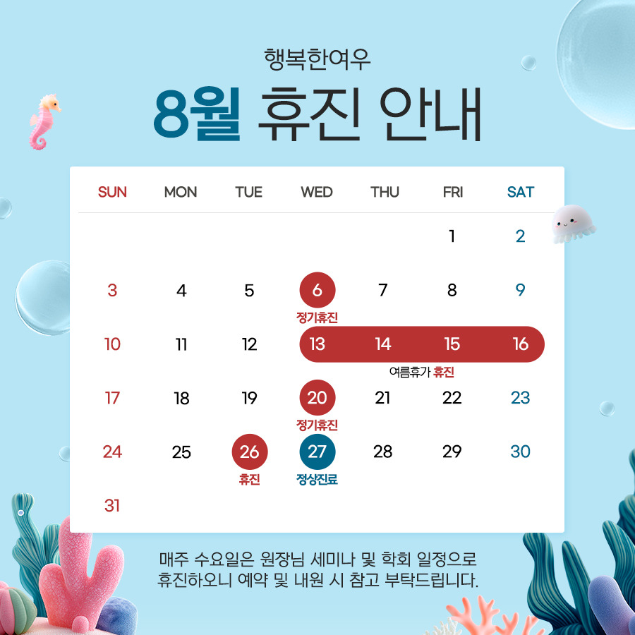 🗓️ 행복한여우 2025년 08월 휴진일정 안내