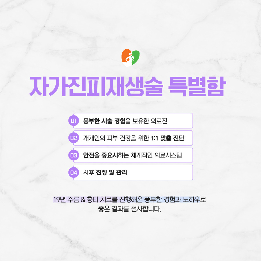 그 중에서도 ‘자가진피재생술’은 특히 깊은 목주름에 맞는 관리로 주목받고 있답니다.
