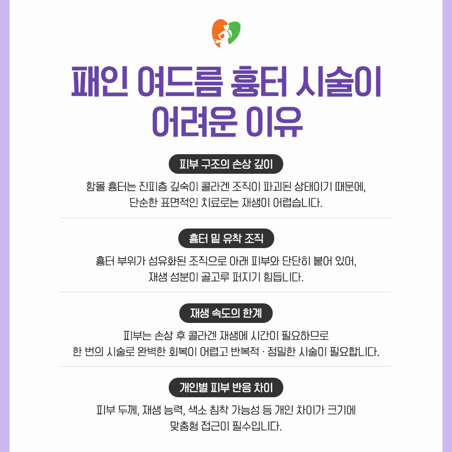 오랜 시간 동안 자신감을 잃게 만든 흉터라면, 단순한 선택보다 내 피부에 맞는 정밀한 접근을 통해 개선하는 것이 현명하다고 할 수 있죠.